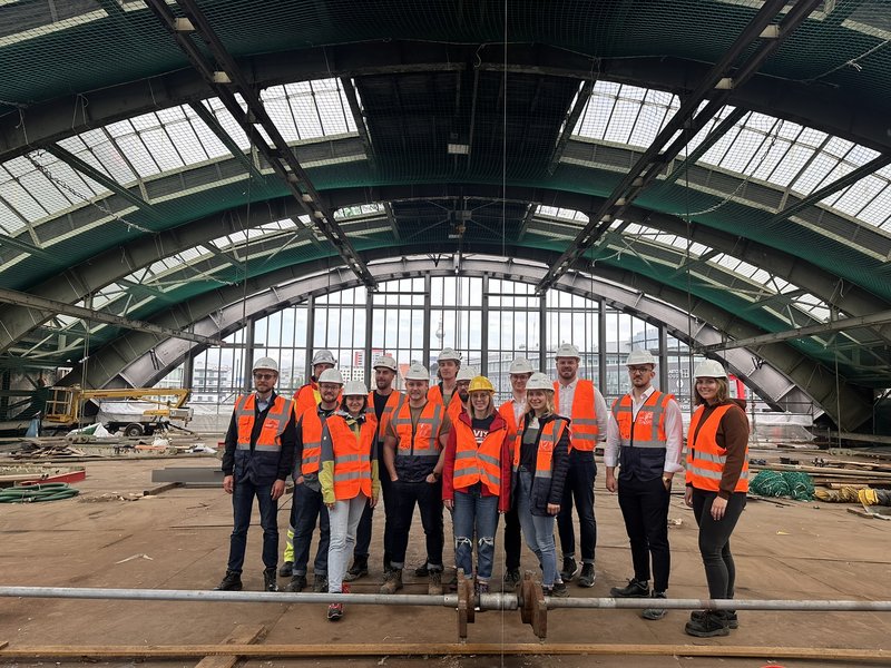 Die Studierenden des Masterstudiengangs „Energieeffizient und nachhaltig Bauen“ der HAWK Hochschule Holzminden haben unsere Baustelle am Berliner Ostbahnhof besucht. Vor Ort erhielten sie einen Einblick in die laufenden Arbeiten und die Fortschritte der Baustelle.