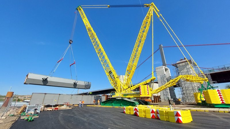 Am Dienstag 19.04. begann an der Leverkusener Rheinbrücke die Entladung und Montage der Großbauteile im linksrheinischen Vorland.