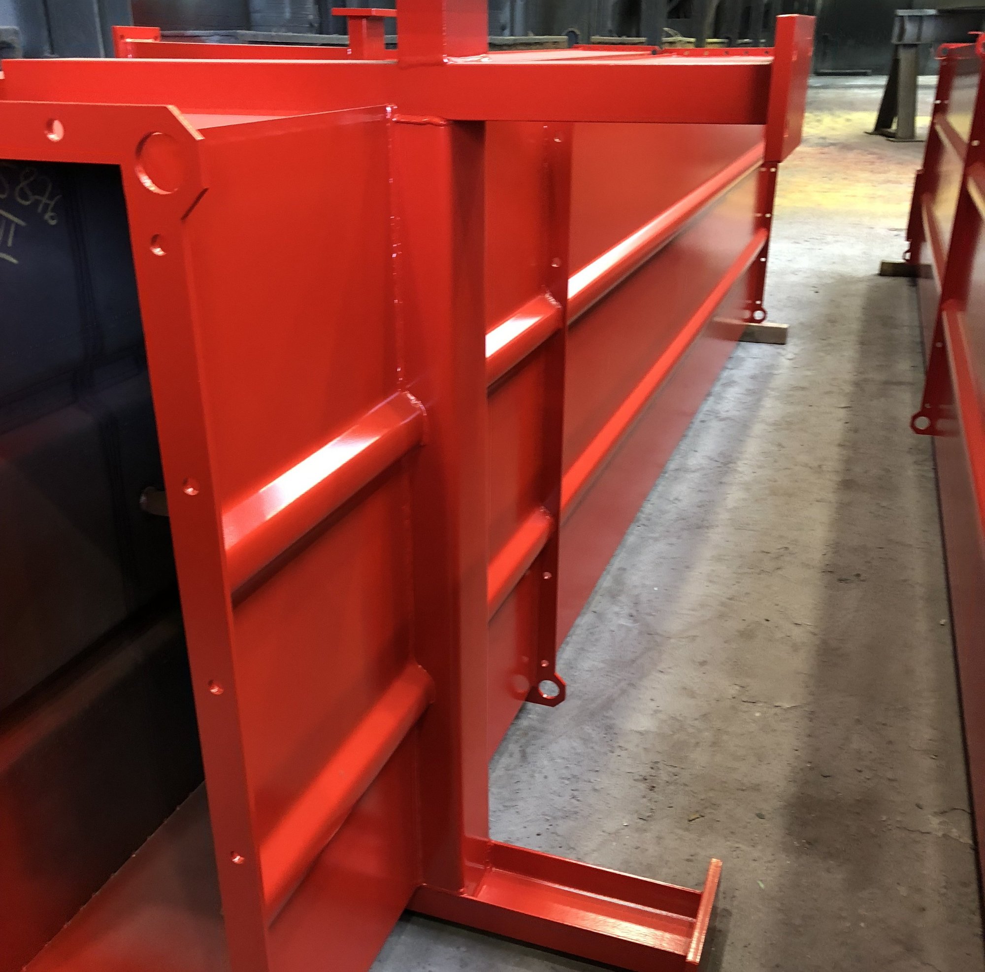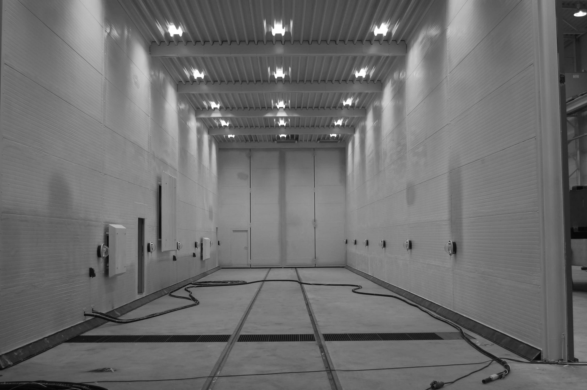 Die Strahlkabine ist ein abgesonderter und in der Breite erweiterbarer Bereich mit erforderlichen Sicherheitsvorkehrungen in der Korrosionsschutzhalle.