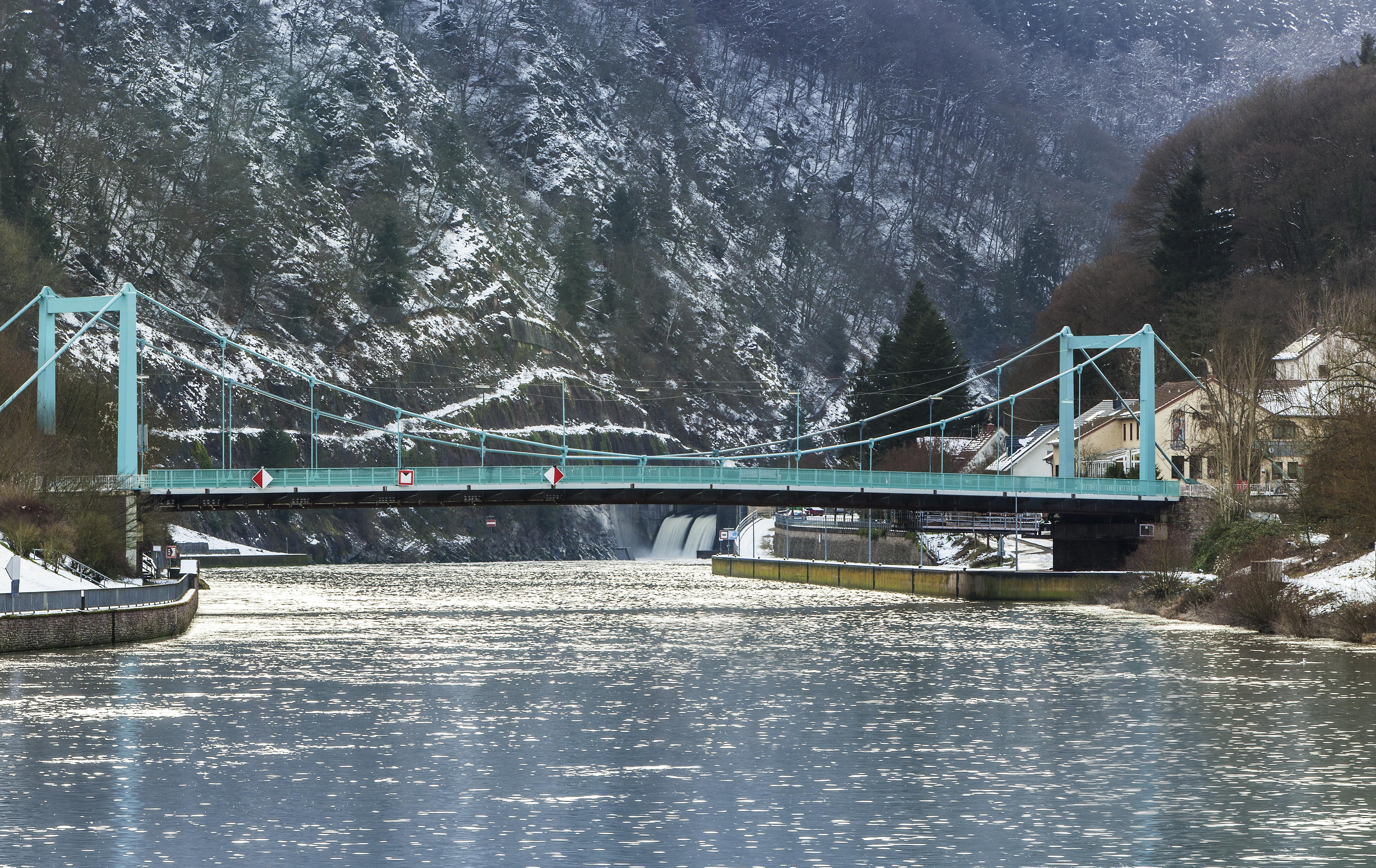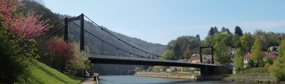 Die Fahrbahn der 1951 gebauten, denkmalgeschützten Hängebrücke über die Saar in Mettlach musste erneuert werden, weil anderenfalls die Tragfähigkeit des Bauwerks auf Grund von Verschleiß, Korrosion und hohem Verkehrsaufkommen hätte reduziert werden müssen.