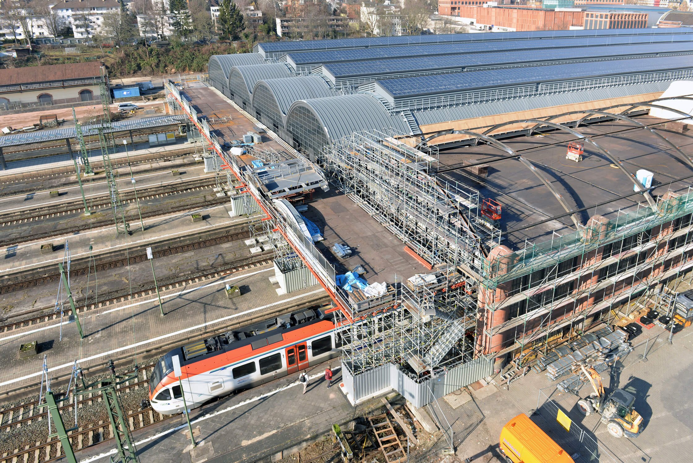 Um den Bahnverkehr nicht zu beeinträchtigen, wurde eine innovative Gerüstplattform über den Gleisen errichtet, die einerseits dem Schutz der Reisenden diente, andererseits als Montageplattform für die Sanierung der Dächer fungierte. Nach der jeweiligen Fertigstellung der einzelnen Hallen wurde die Gerüstplattform in die nächste verschoben. Die Gleissperrungen und somit die Eingriffe in den Bahnbetrieb wurden auf ein Minimum reduziert.