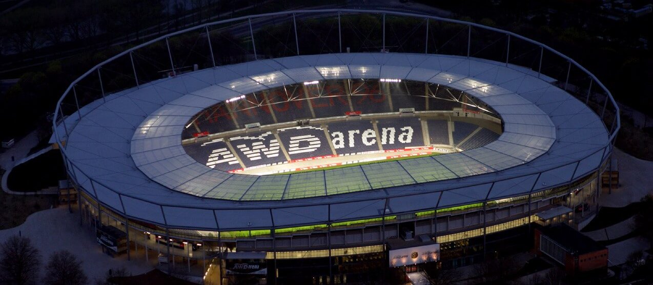 Von Wayss & Freytag Ingenieurbau Frankfurt - mit denen wir bereits erfolgreich die Veltins-Arena realisiert haben - erhielten wir den Auftrag für die Dachkonstruktion des Niedersachsenstadions zu Hannover. Die von den Architekten Schulitz & Partner in Braunschweig entworfene Arena ist zum einen die Heimat des Traditionsclubs Hannover 96 und war zum anderen eine der Austragungsstätten für die WM 2006 in Deutschland.