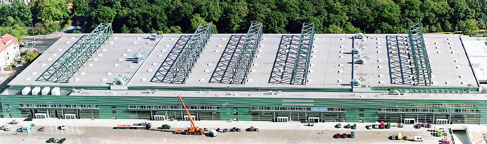 Mit der Halle 4/5/6 wurde das Messe- und Veranstaltungszentrum Bremen erheblich ausgebaut. Wir lieferten und montierten die komplette Stahlkonstruktion.