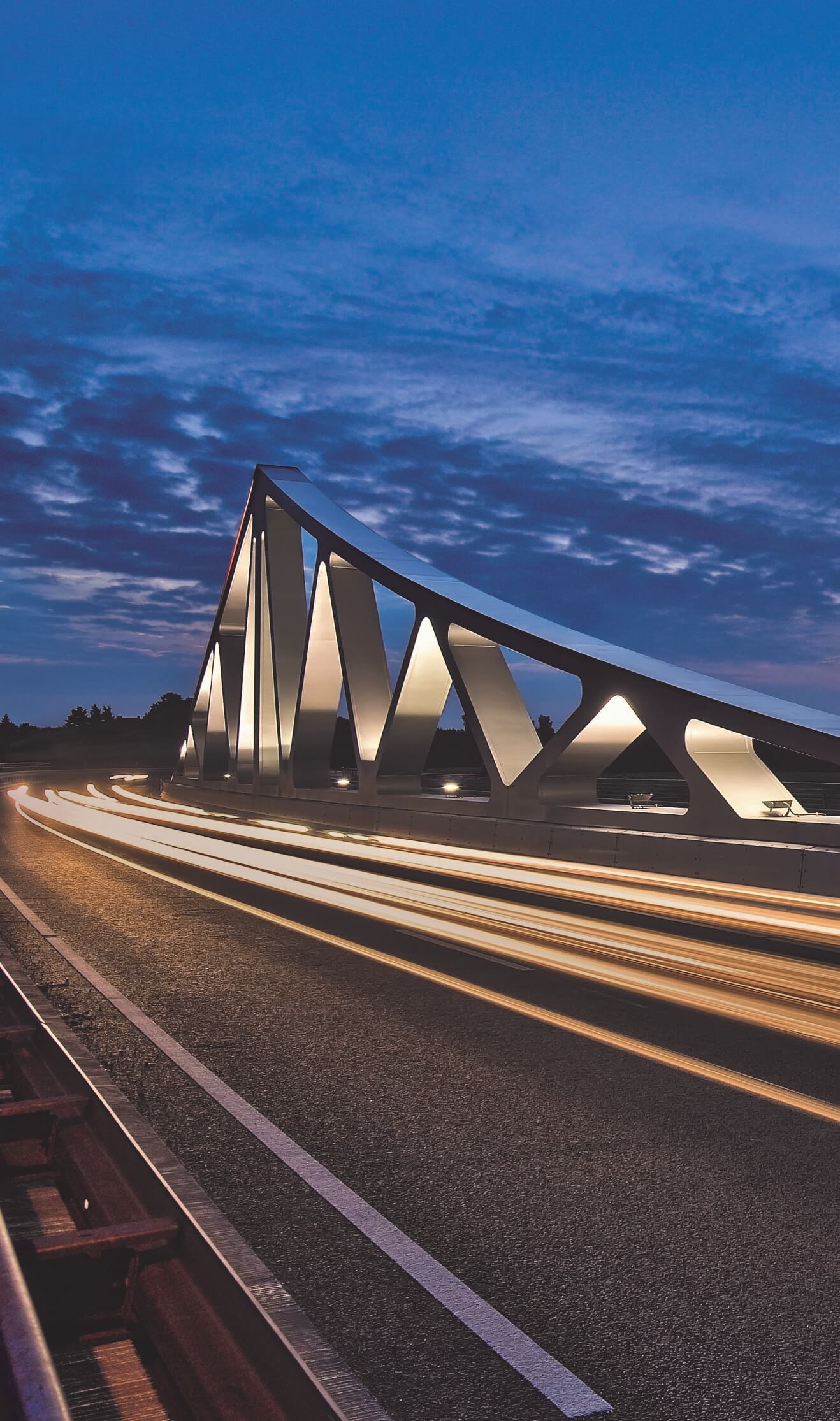 Das neue Brückenbauwerk bietet durch stromlinienförmige Pfeiler, große Stützweiten und den höher gelegten Überbau einen deutlich besseren Hochwasserschutz als die alte Brücke. Das insgesamt 523 m lange Bauwerk besteht aus einer 210 m langen Flussbrücke und einer 313 m langen Vorlandbrücke, wobei ein Trennpfeiler den Übergang von einem Bauwerk zum anderen markiert. Die Flussbrücke ist als Zügelgurtbrücke mit weithin sichtbarer, markanter, oben liegender Tragkonstruktion ausgeführt und überspannt den eigentlichen Flussquerschnitt ohne einen Pfeiler.