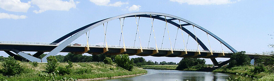 Die Saalebrücke Beesedau quert im Zuge der neuen Autobahn A14 (Verkehrsprojekt Deutsche Einheit Nr. 14) als einziges Brückenbauwerk mit oberhalb der Fahrbahn liegender Tragkonstruktion und damit für den Benutzer der Autobahn erlebbar, die Saale. Die einzigartige Konstruktion überspannt als architektonisches Mischtragwerk aus "echtem" Bogen und Stabbogen die Saale. Durch die Anordnung von Schrägstreben am Bogenfuß, die einen Teil der Bogenkräfte wieder in den Fahrbahnhauptträger zurückleiten, war es möglich, das Konzept des echten Bogens, gegründet im Auevorland der Saale, zu verwirklichen.